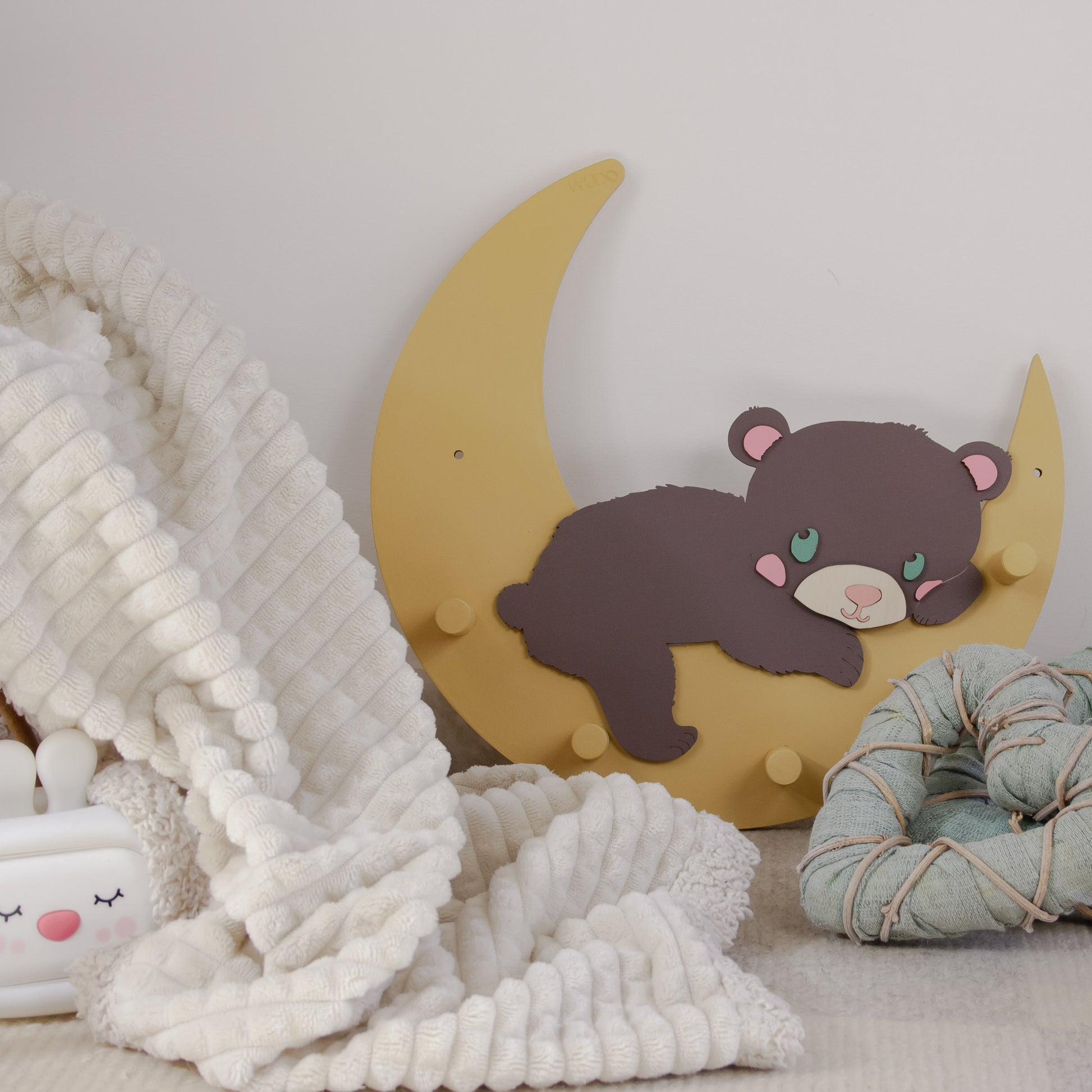 Appendiabiti in legno Mielo – Orso sulla Luna | Sogni d’Oro